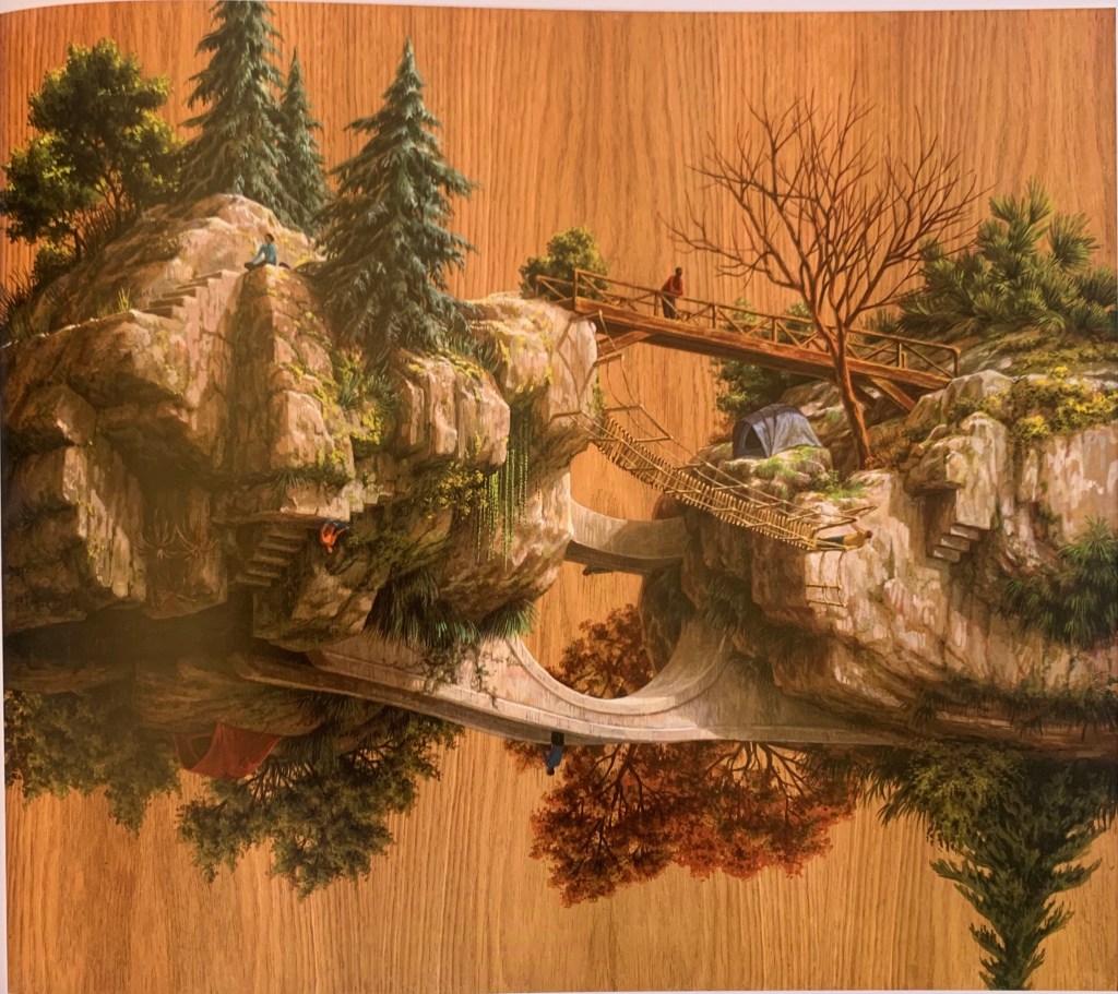 In this chapter the author introduces 12 artists who create their artworks as a “…view (literal or metaphorical) out to far prospect, …..into the distance” where it “…. Takes a gaze or the imagination paddy a succession of planes or objects”– called as “complicated vistas”. As I understood, this art movement suggests the idea that the reality we face or immersed and placed in as human beings is very complex, and the artists aim to show it at full possible for them extend without reducing or distilling any particular fragment of their perception of it. The authors says: “What makes vistas complicated can be something internal-the complicated attitude with which one sees it”. It was interesting to discover why this chapter has been put as a last chapter in the whole structure of the book. As it’s editor Todd Bradway explains it: complicated vistas “where all other sections add up – that the other thematic sections had clear roots in the nineteenth and twentieth centuries, whereas the idea of the complication is timeless and universal”.