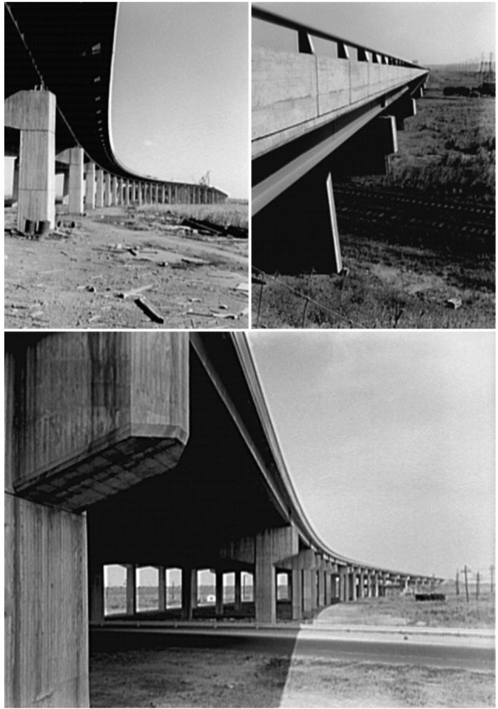 - « The experience of the road ». As Tony Smith’s well known impression he shared in 1966 in his Artforum interview : «At first I didn’t know what it was, but it’s effect was to liberate me from many of the views I had had about art. It seemed that it had been a reality which had not had any expression in art ». I have done some additional research about this artistic experience of Tony Smith who was a famous American artist and sculptor: I found the photos of that “illicit drive” mentioned by the author of the book. There is a good article about that particular experience on http://www.placejournal.org – Places. « The Highway not taken: Tony Smith and the Suburban Sublime ».