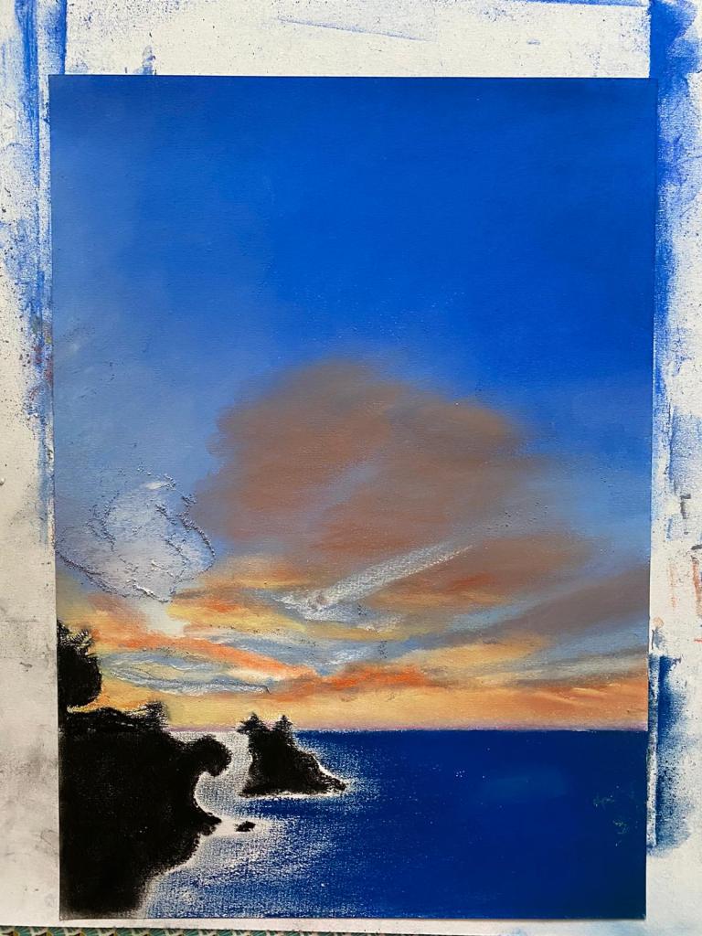 - I gave more space to the sea and didn`t angle the horizon line. On the painting I made the horizon line straight because I was not sure it would look great if copy the angle as it was on the photo;