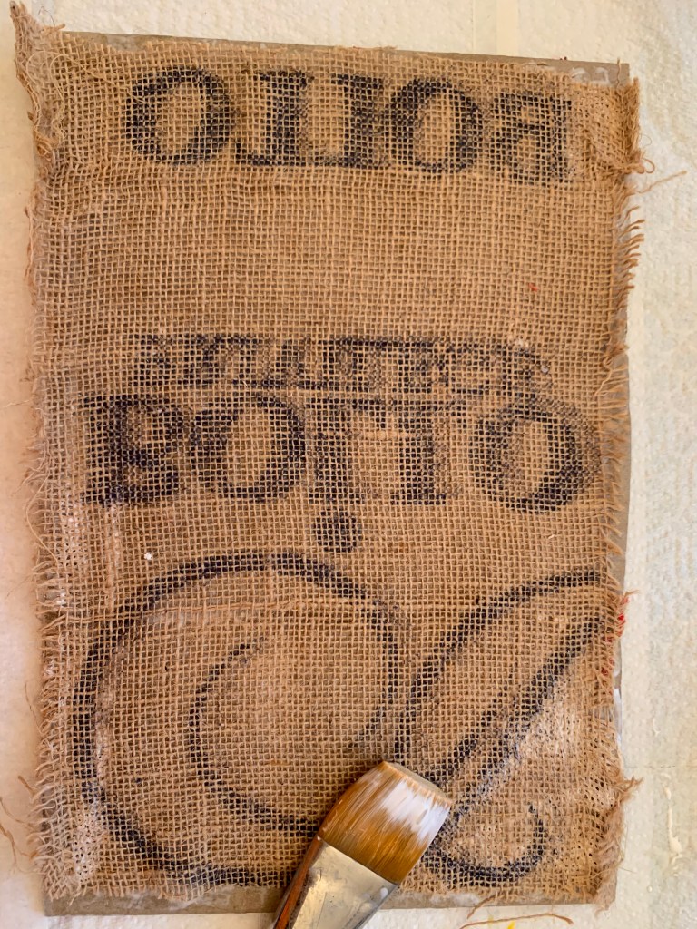 Below is another textured surface I have made using a carton board and a net from mandarin packaging. I have put the net on the layer of PVA glue and painted it with dark pink acrylic paints without any idea about the final result. Then I added gold acrylic paint and saw some floral mood. Then I added brunches to show the blooming tree.