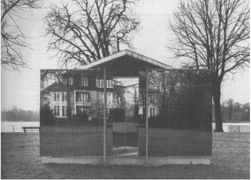Below are some works of Dan Graham where we can see his experiments with mirrored surfaces. From left to right: