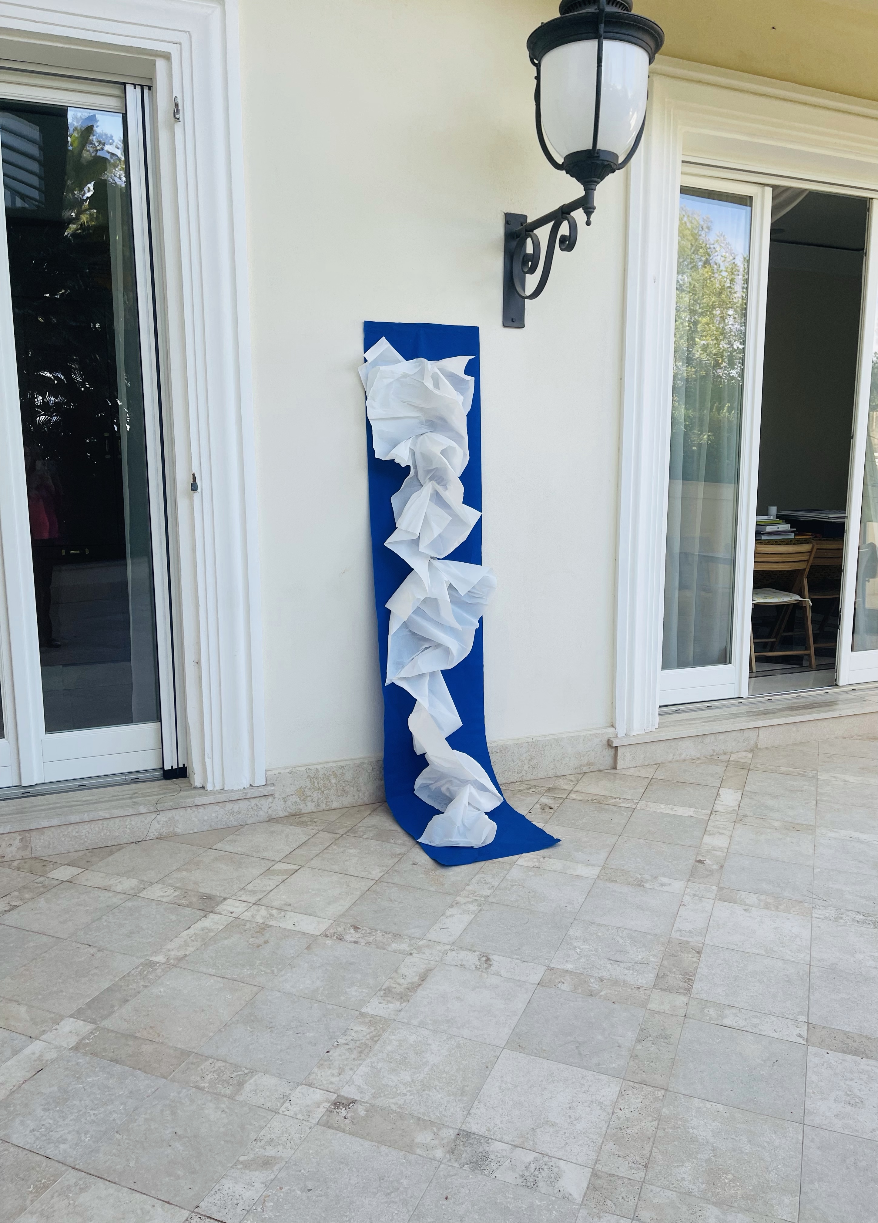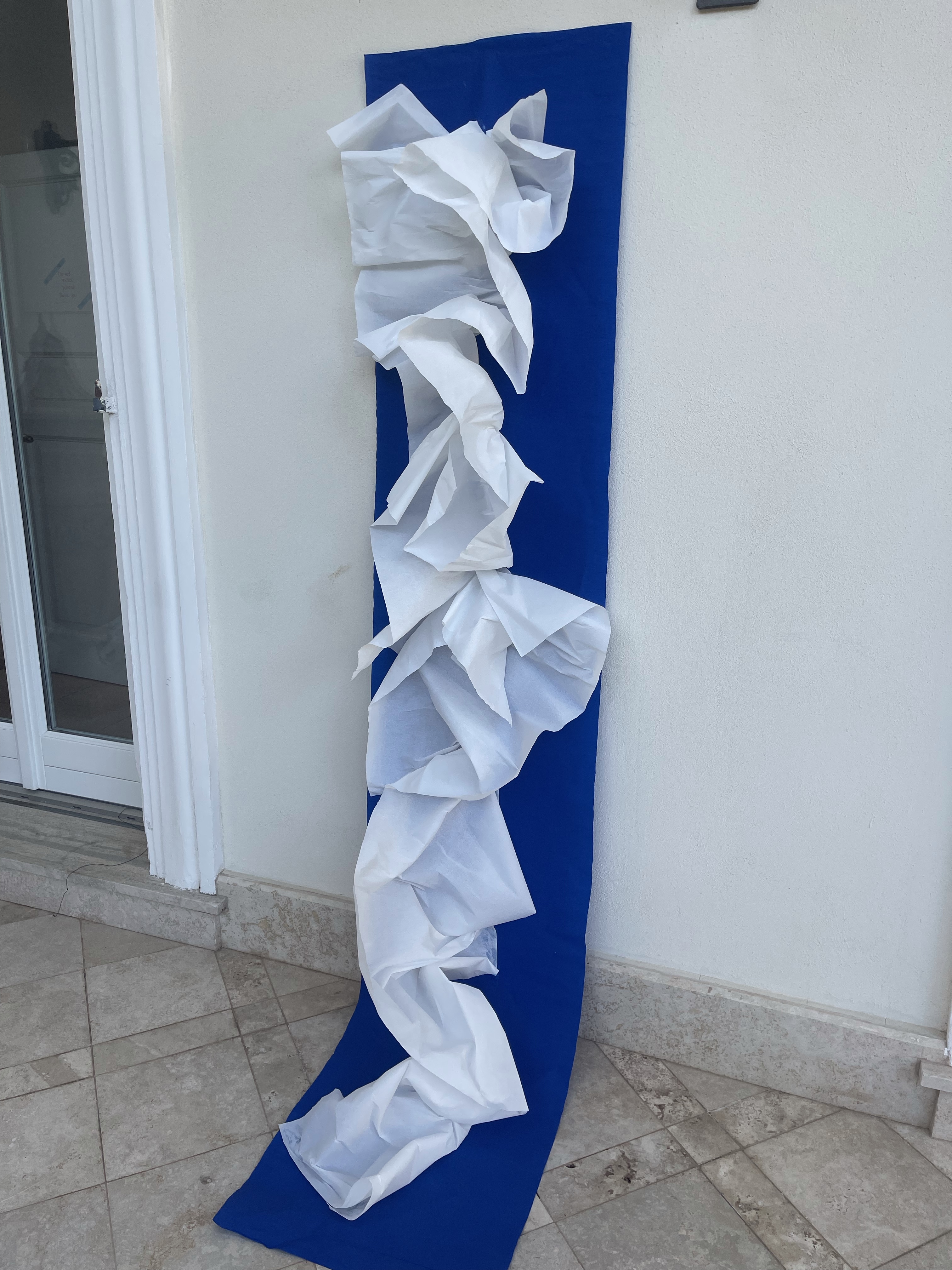 This process of thinking and using unconventional painting materials appeared as truly creative: when I unfolded the paper I don’t know with what I will end up eventually. It was a pure artistic flow, because the outcome was my immersive installation, please, check the video file.