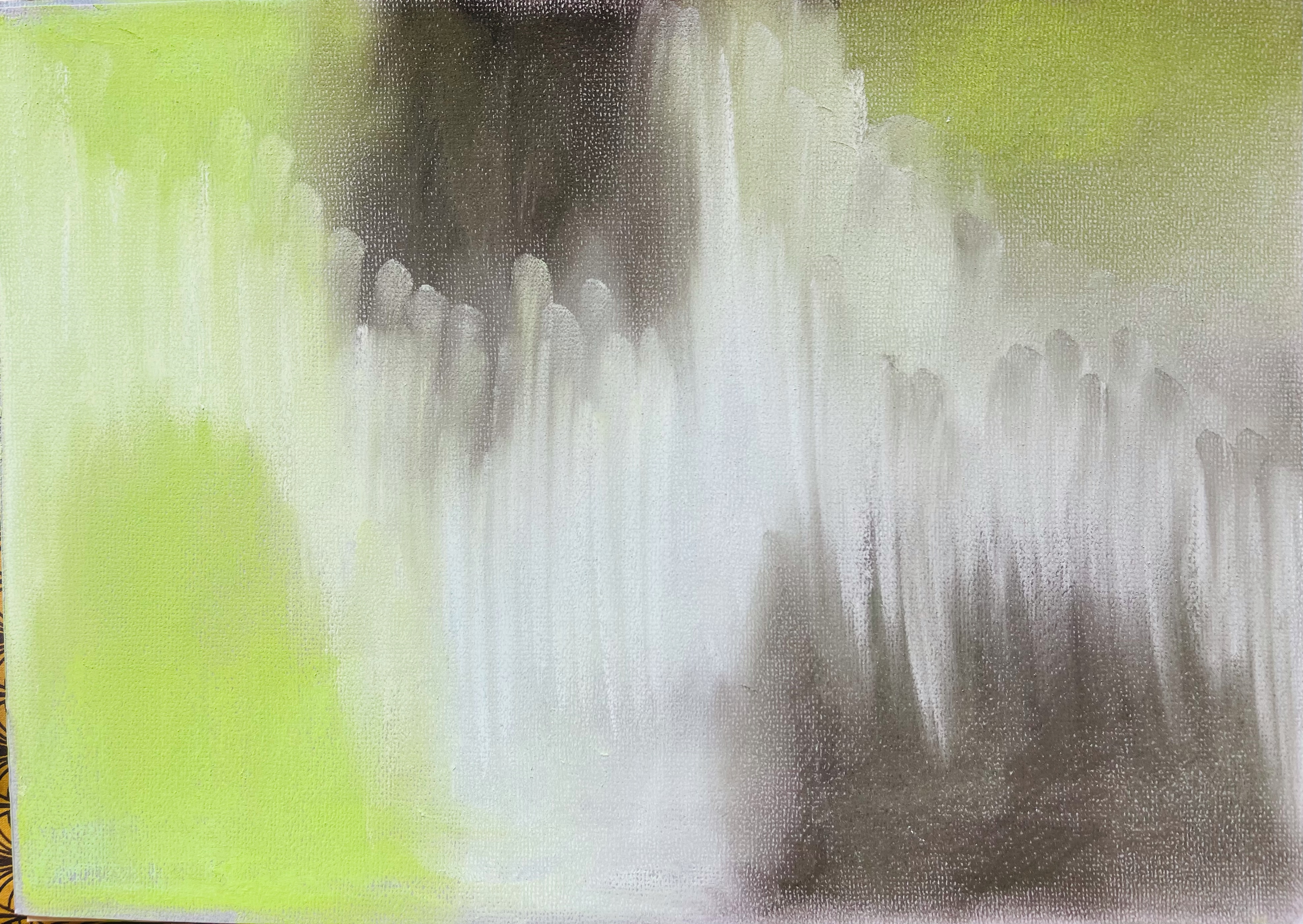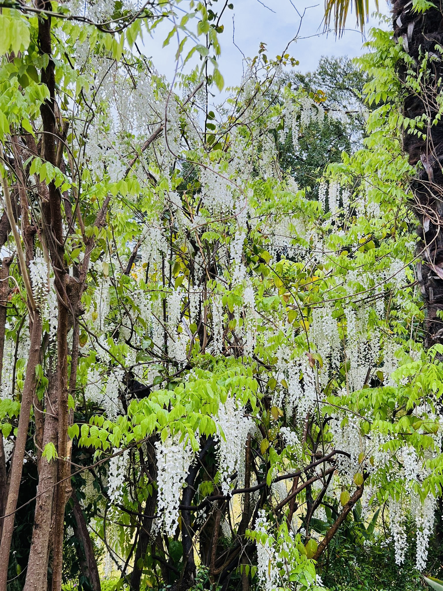 For blooming wisteria motives: The shade of green colour of young leaves I could name as Vivid, Vibrant, Crispy Fresh, Young, Naive; The white colour of flowers – Scented Snow, Milky Dew, Lakshmi White; The brown colour of branches and stems – Soft Earth, Pale Brownie;