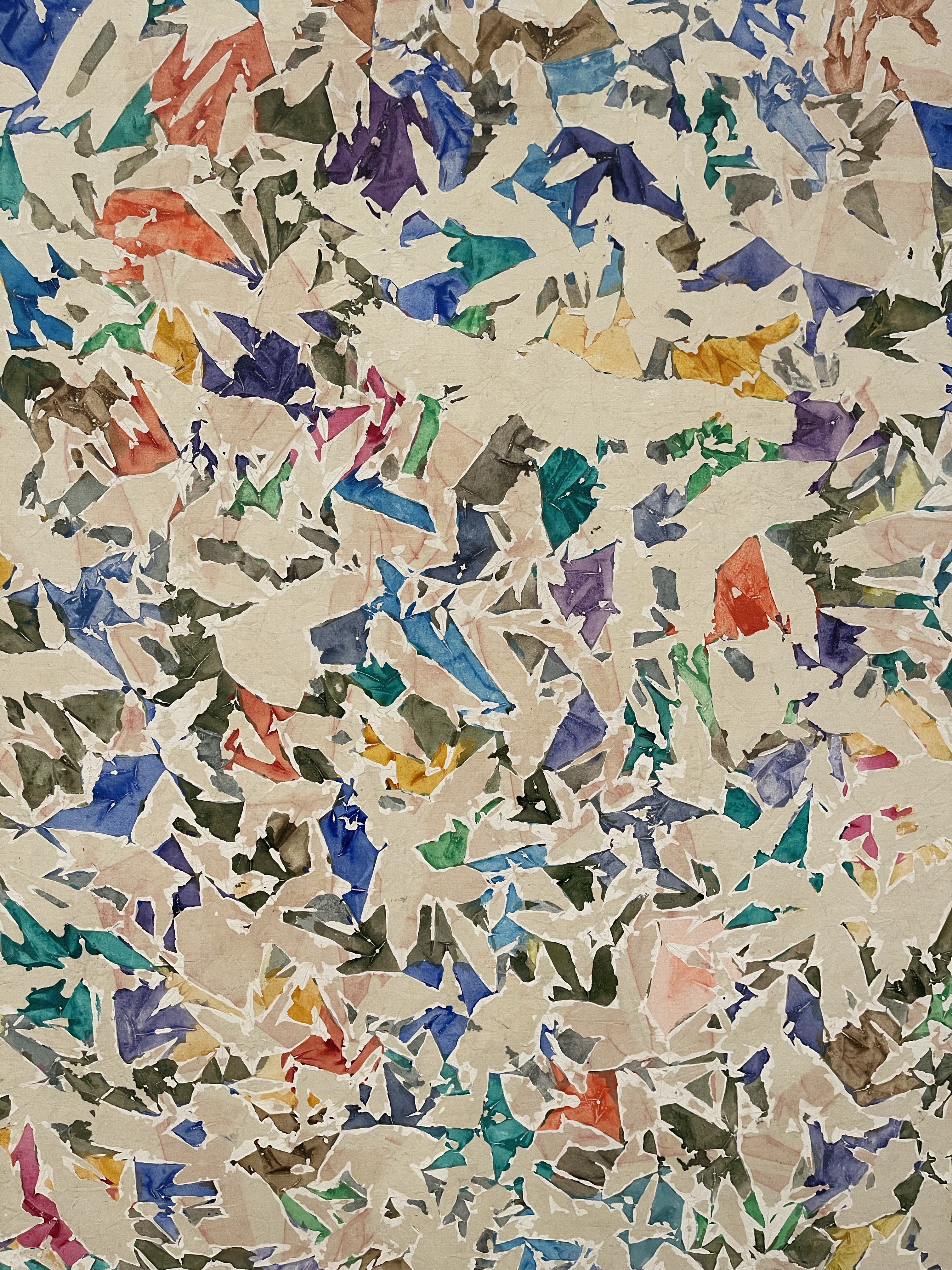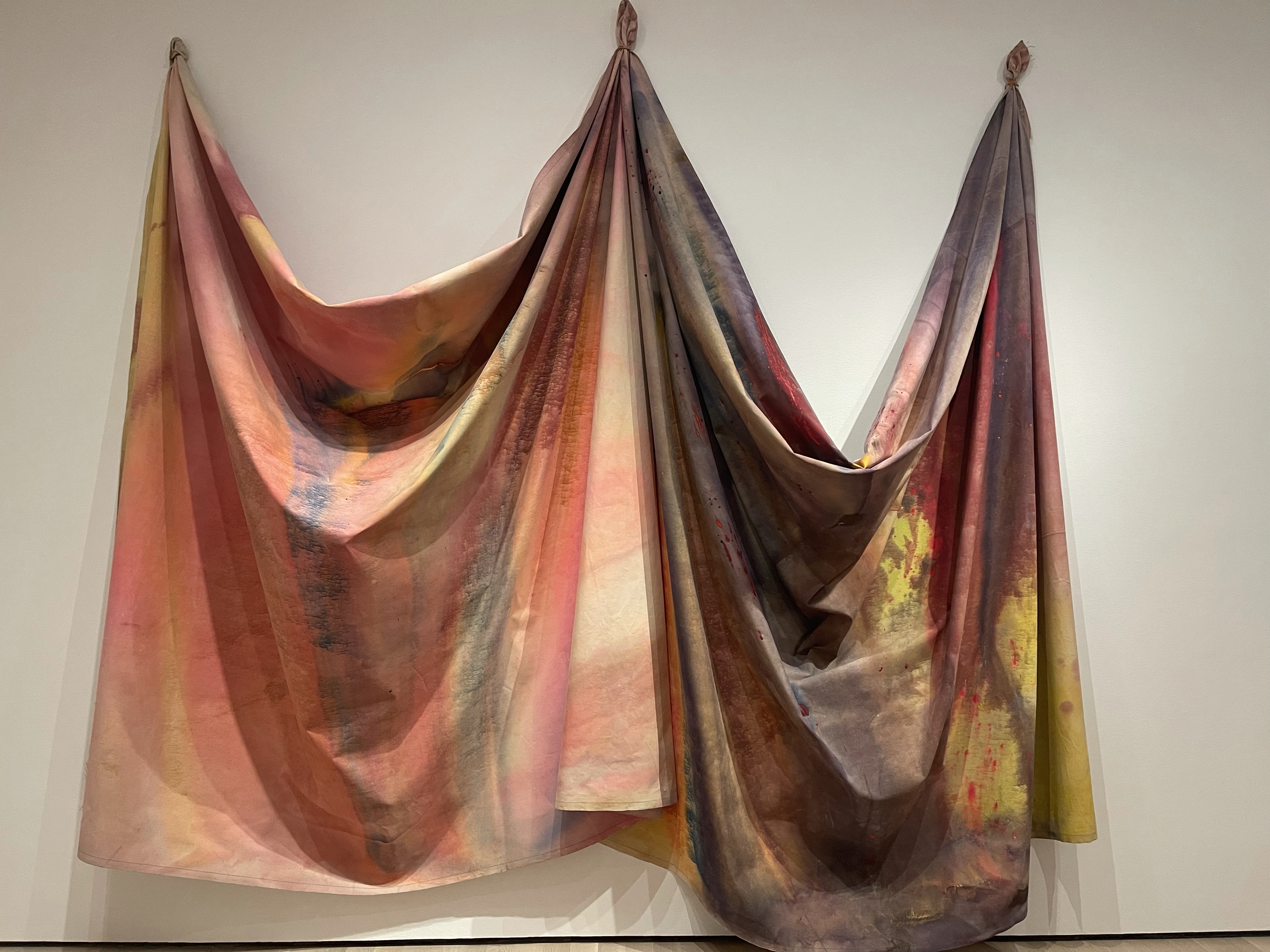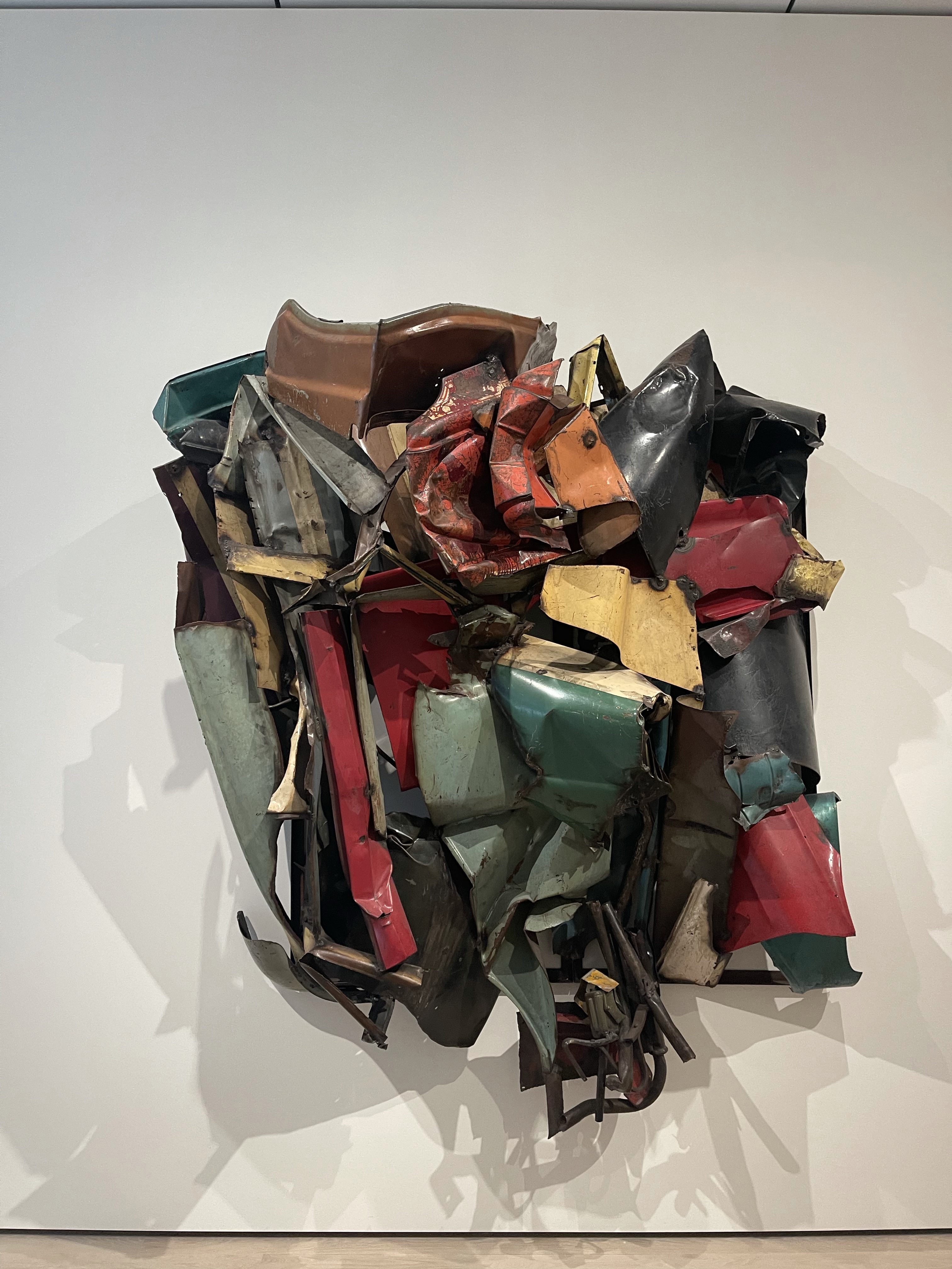 Sam Gilliam, 10/27/69, 1969, acrylic on canvas; image via MOMA exhibition, Jine 2022, NYCJohn Chamberlain, Essex, 1960, automobile parts and other material. Image via photo at MOMA exhibition, June 2022, NYC;“Slack of Net’, 1969, Jiro Takamatsu, cotton rope and twine; image via MOMA exhibition June, 2022; NYC“Dis Pair”, 1989-90, by Elizabeth Murray, oil and plastic cap on canvas and wood; image via MOMA exhibition,June, 2022; NYC“Empty Chair or The Last Colonial”, 1969, by Alfonso Ossorio, glass and plastic marbles, painted skeletal fragments, faux pearls, pebbles, animal claws and other materials on plastic sheets mounted on wood; image via MOMA exhibition,June, 2022; NYC“Antigone”, 1970, by Zilia Sanchez, acrylic on stretched canvas; image via MOMA exhibition, June 2022; NYC“Untitled” [Suite “Blancs”], 173, by Simon Hantai,crylic on canvas; image via MOMA exhibition,June, 2022; NYC“Untitled” [Suite “Blancs”], 173, by Simon Hantai,crylic on canvas; image via MOMA exhibition,June, 2022; NYC