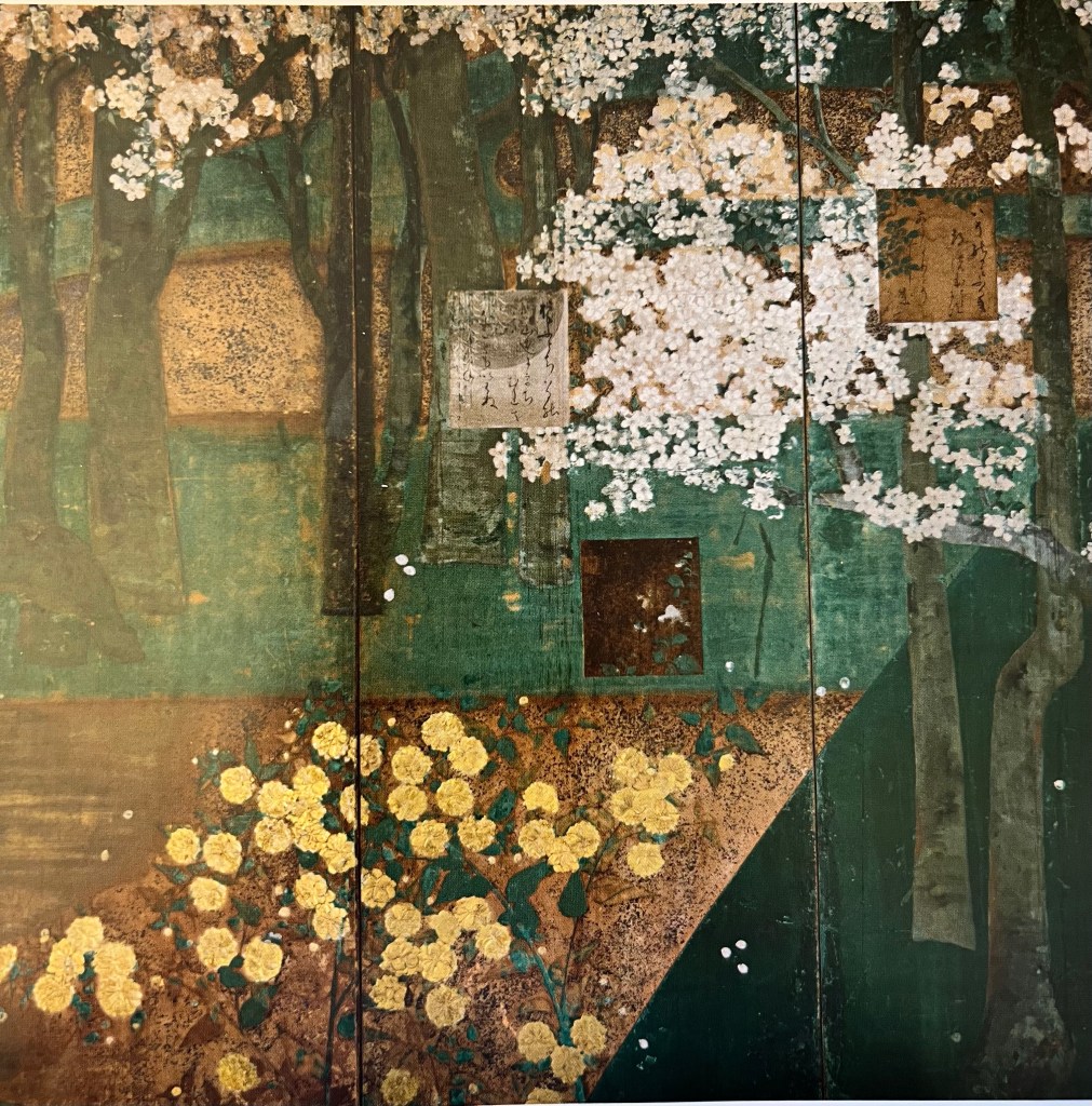 I want to draw your attention to one landscape below created by Tawaraya Sōtatsu, “Cerisiers et Coretes du Japon”, painted on paper at the beginning of the XVIII century. It is strikingly modern! The way he did the cherry flowers in blossom, the thick and robust stems of trees, the geometric elements of the composition, the large flat block of colours- everything looked like modernist art in Europe.