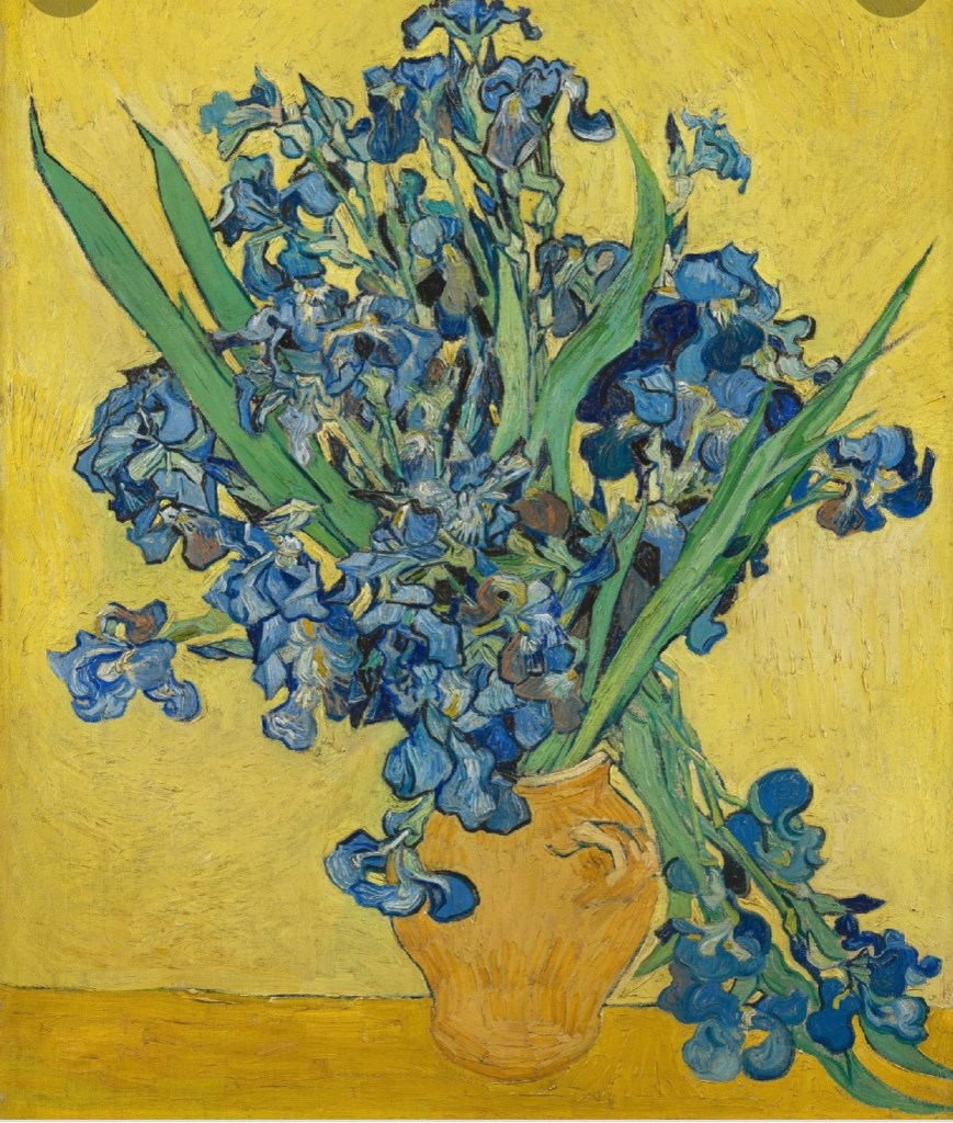 “Irises”, Vincent Van Gogh, 1890, oil on canvas – on the left;