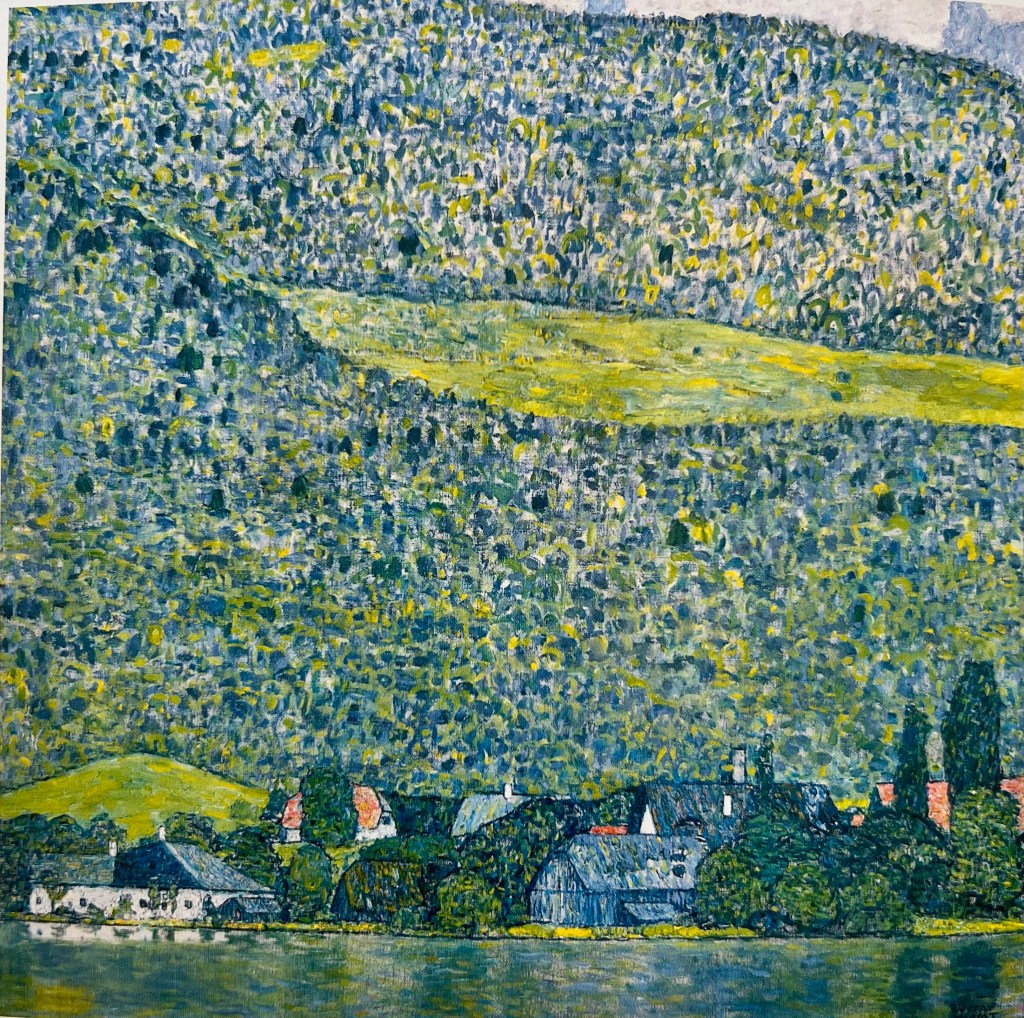 As well as at landscapes : “Maisons a Unterach am Attersee”, Gustav Klimt, 1916, oil on canvas- below on the left ; and “Litzlberg sur L’Attersee”, Gustav Klimt, 1914-1915, oil on canvas; below on the right.
