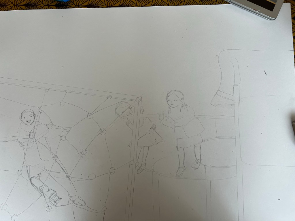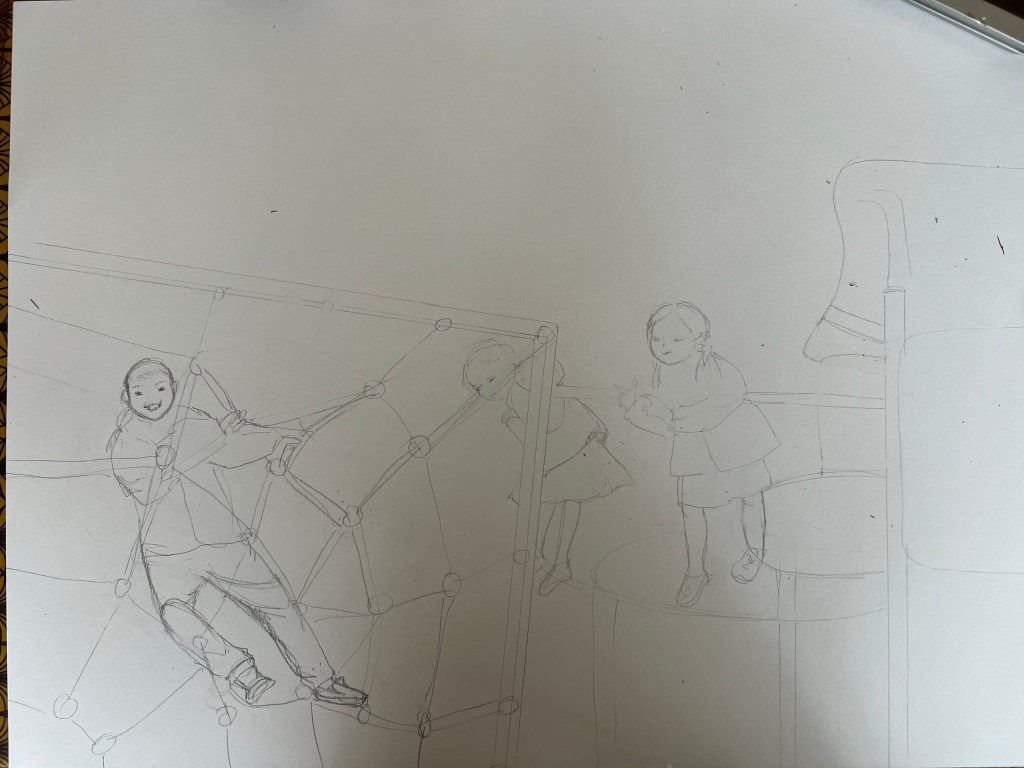 Above is unpopulated scene at the playground. Below is my study of the same scenery with figures of children.
