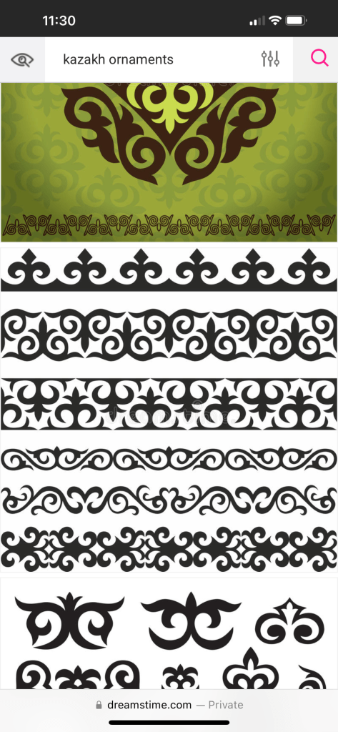 My reflection on the outcome: In general I liked the outcome and enjoyed the process of creating a story, thinking about how can I connect personal and collective narrative/ ideas with symbols on the surface. I am thinking to develop this idea further in larger scale and in oil paints. In the outcome below, I think the face is bit pale, because the background is very dominant, so I can add more of flesh colour. I also have to work on hands details. The background can be different, there are many options for it. I am also thinking about creating series of female portraits in the Qazaq theme.