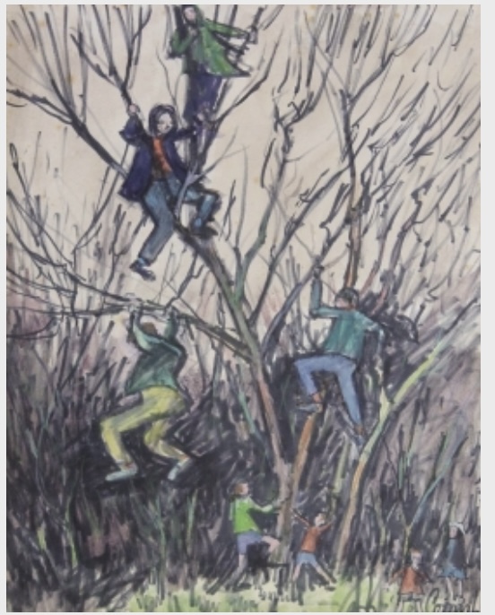 Boys climbing tree, ink and watercolour on paper, Norman Cornish, image via http://www.artuk.org;