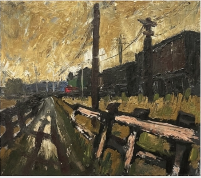 His “A Back Lane” painting is super elegant because of the way he paints the roofs in a light purple shade, which enlightens the whole greyish image. Another scene in “Pit Locomotive and trucks” strikes me with thick dark brown lines of wooden electricity poles and the brutality of the locomotive, yellow skies and the fence – everything is united incredibly. The “Wet Friday” painting makes me feel the smell of the wet rainy air. This artist is just amazing to me.