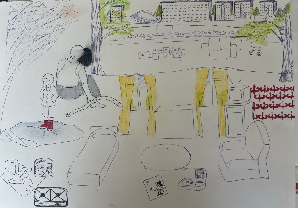 I decided to concentrate on my childhood time sketches – below- to look for potential to use/ develop then further, because my memories/emotions felt as a powerful driving force to work on these theme further.