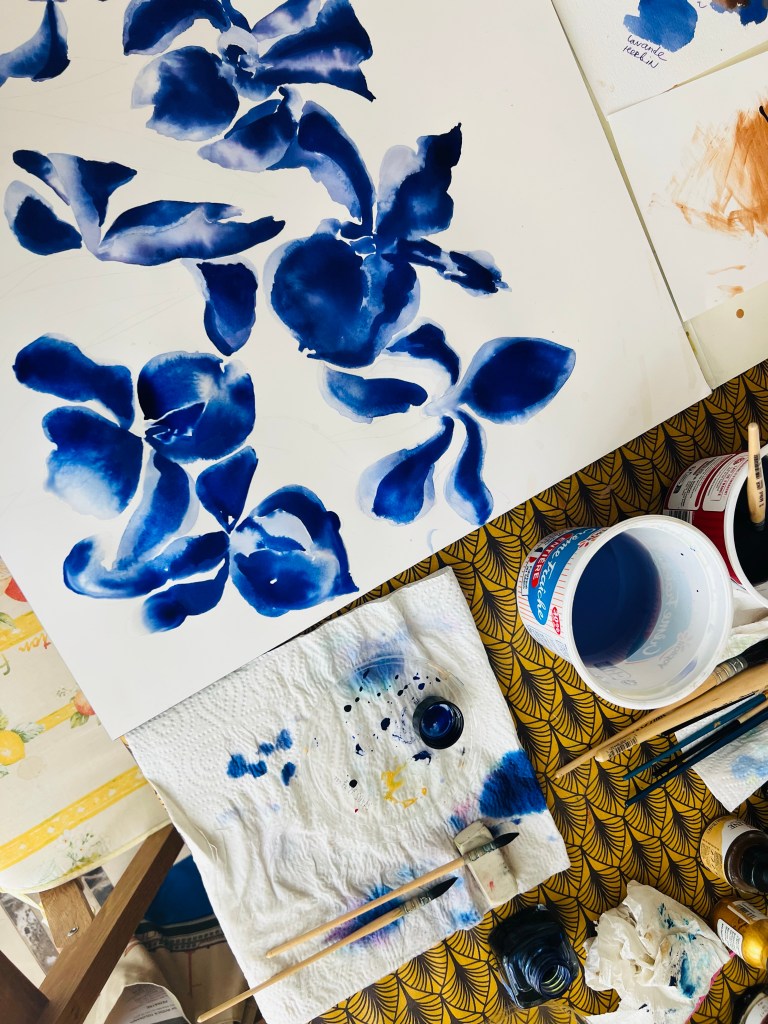 Trials for peonies. I wanted to develop my way of painting peonies and irises.