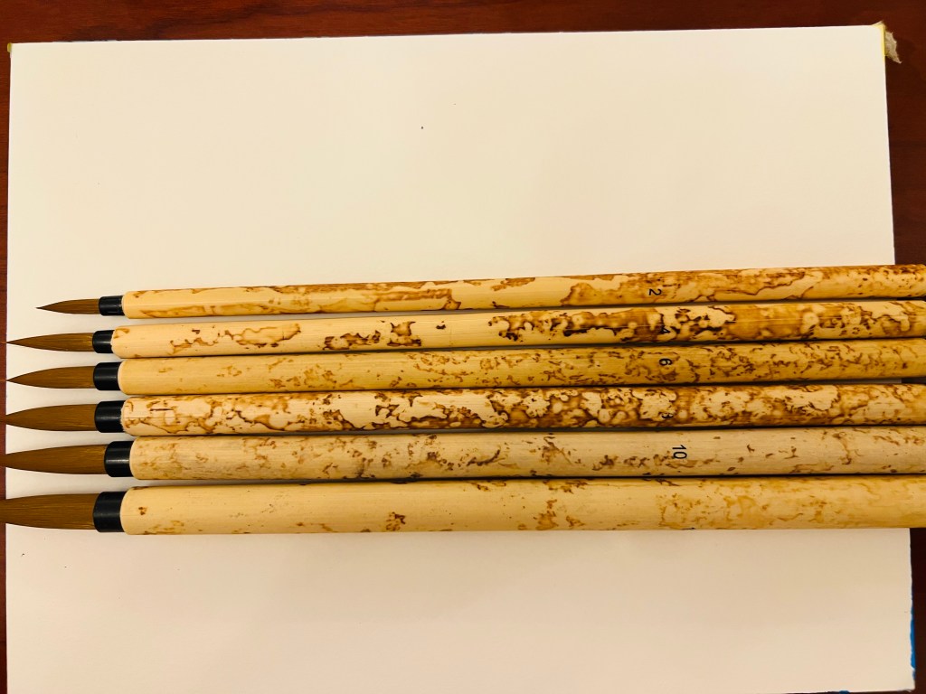 I was further practising my liner skills checking new brushes for other flowers besides peonies and irises as candidates for the PP .