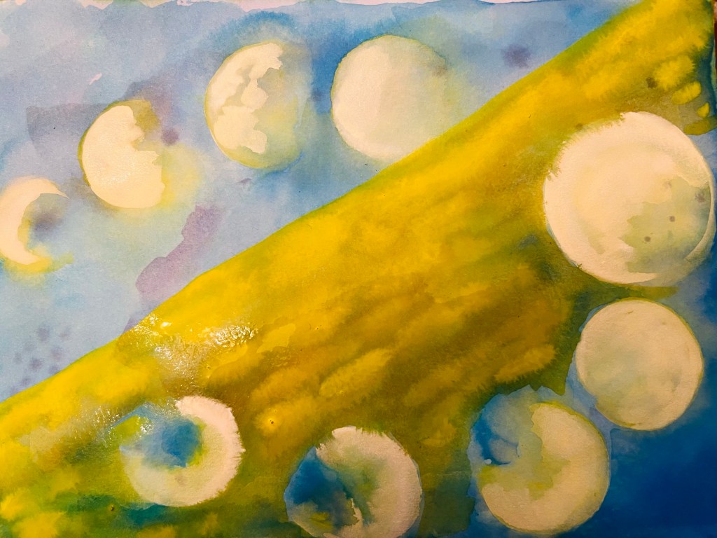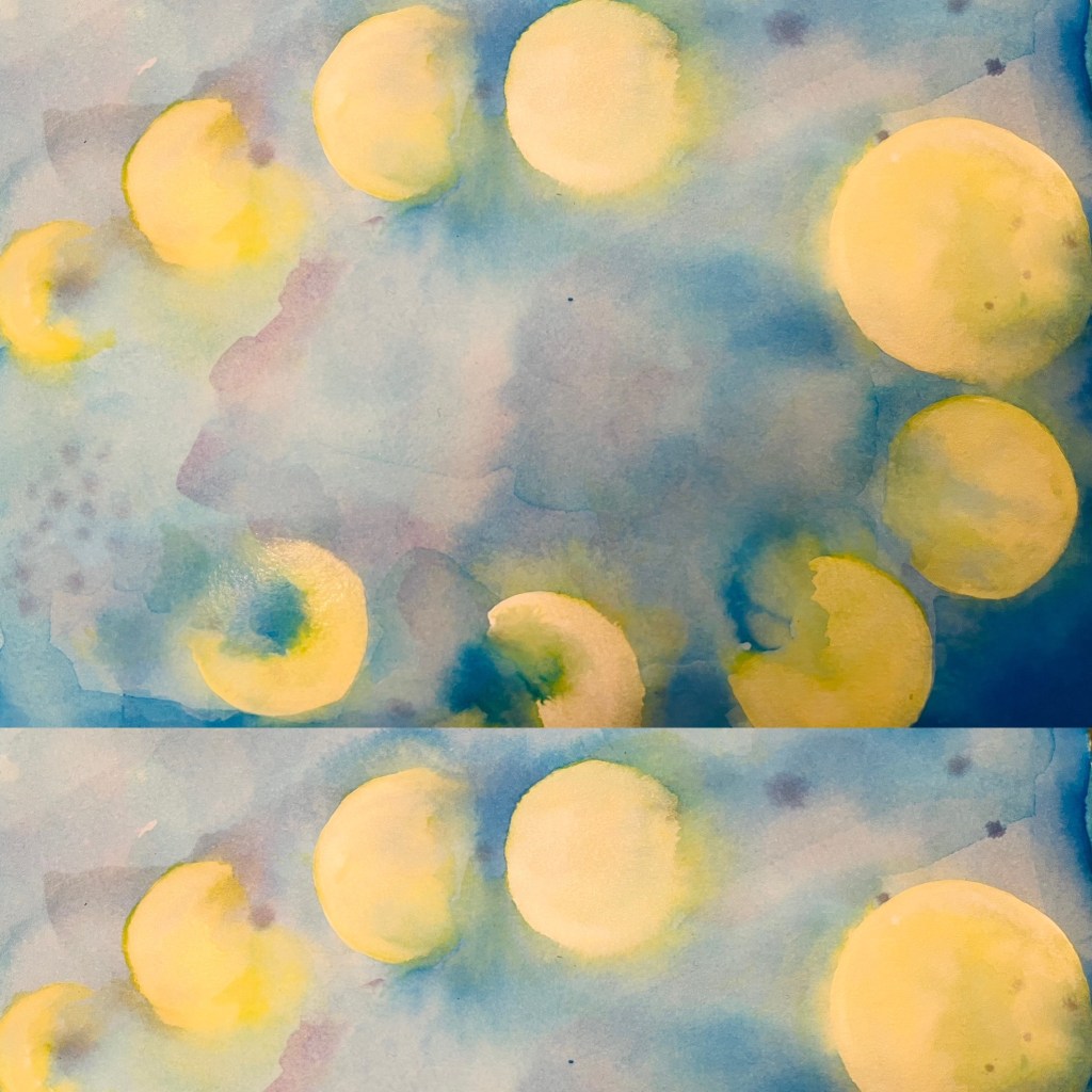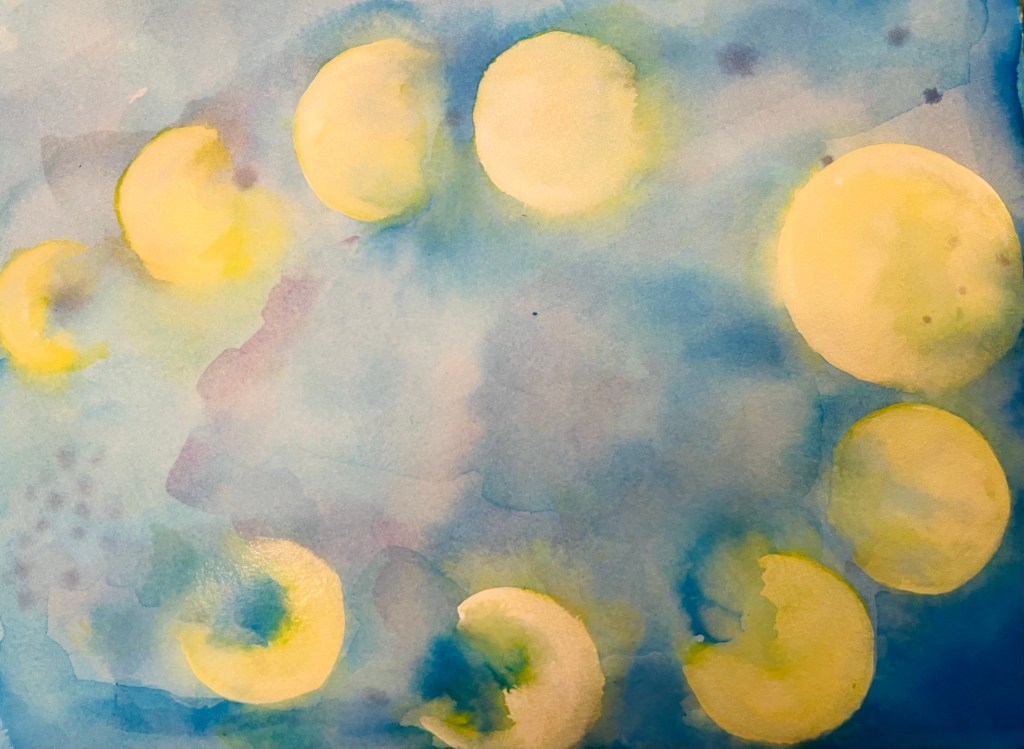 The drawing below is the Moon’s movement. The celestial bodies move all the time and their movement is very dramatic and intriguing. The Moon is a fastest moving object around the Earth, so it is on the constant move. I like this drawing of mine, it does have some hypnotic effect because of the changing Moon images. You can see below a circle of the Moon cycle: the waxing and the waning Moon. Each phase is a totally different Moon.