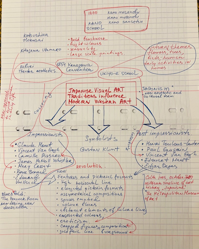 Below you can find the mind maps I did for some of my projects from my practice. One is about my critical writing piece I did “Japanese Visual Art influence Modern Western Art”. Another two are for my painting projects under development, is mind mapping appeared as a great toll to reflect on them in general and in details, working on unfolding new dimensions, which can be visually transferred on canvas/paper.