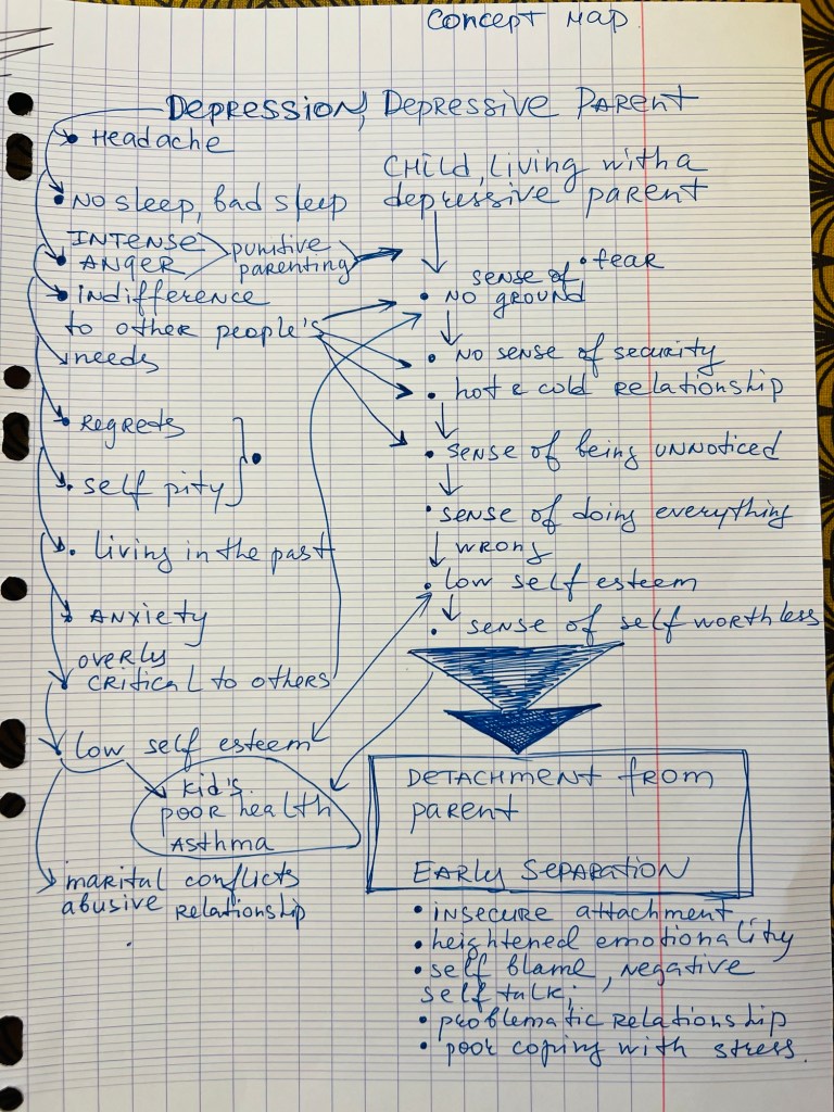 The Concept Map for a concept of depression from the “Childhood” mind map.