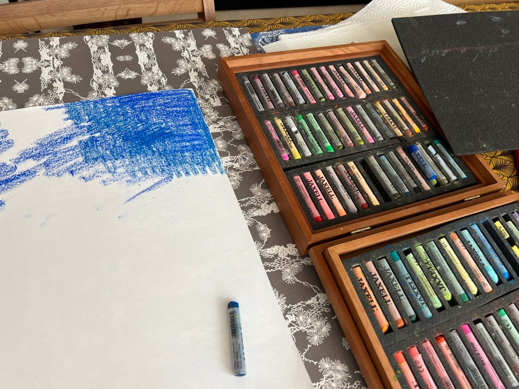 While searching for videos of artists at work, I discovered the artworks of American contemporary visual artist George Condo (1957-). I watched the videos about his drawing process “Bus Driver’s Dream”, 2017 and The Way Think made in his studio. I liked his manner of painting which is relaxed and smooth, he has strong linear skills and I can see his sense of humour in his artworks. George Condo draws and paints with soft pastels and oils, he is very outspoken and sincere, I enjoyed listening to him. He is interested in capturing human’s emotions in his artworks, trying to get to a surface the emotional/ mental state of a human. He also developed this concept of “double portrait”- an abstract cubistic style portraiture, which is his way to bringing together polar emotions or emotions of several people into one person’s/character’s portrait. It was interesting to read about some details about his working practice in his interview to Jacoba Urist he gave before Frieze Art Fair in LA, 2023: “I like a small studio space so that I’m surrounded by my paintings: one here, one there, one right behind me. While that painting is drying, I can work on this painting a little bit, and I can see from the corner of my eye, something over there on that one. But if they were 300 meters apart or I had a basketball-court-size studio, and they were all lined up as if they were going off to a gallery, it just wouldn’t feel like I’m making paintings for the sake of the paintings themselves. I painted the big, red double-wide composition, Double Heads on Red, 2014, [currently on view] at the Broad, in a one-car garage. When the work is right up close to me—literally 2 feet away—there’s a tactile aspect to it, and a friendship between me and the artwork itself.”