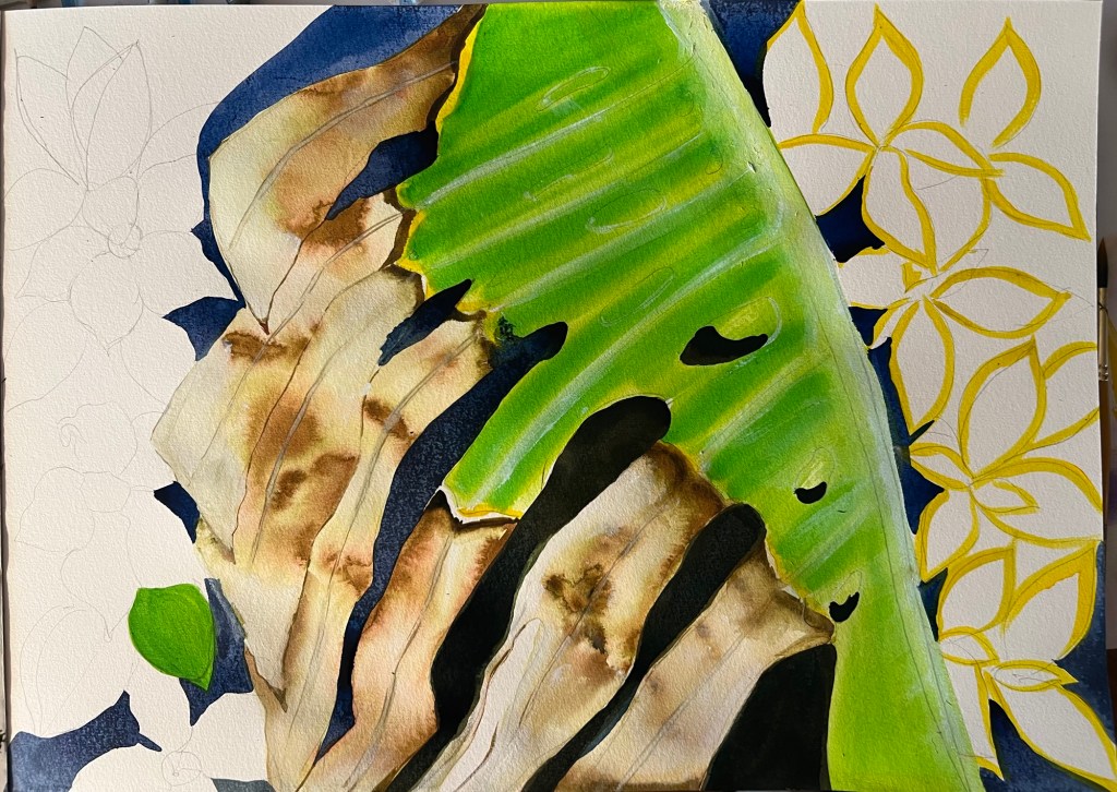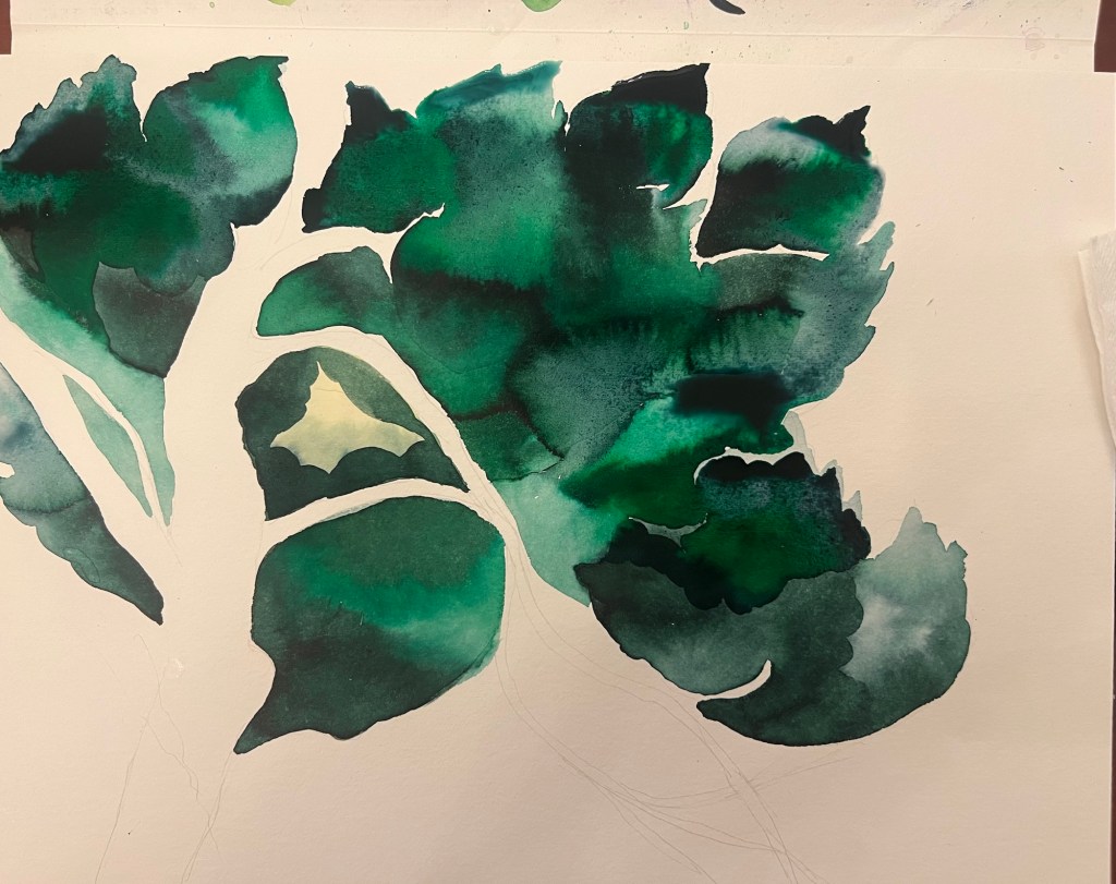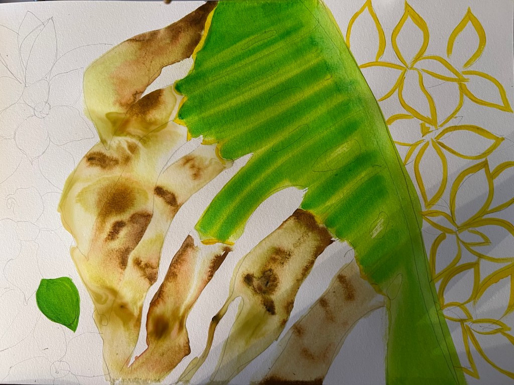 Since the trees are quite an essential element of my project, I work more on them. I tried the various shades of green inks and worked on my ink painting skills.