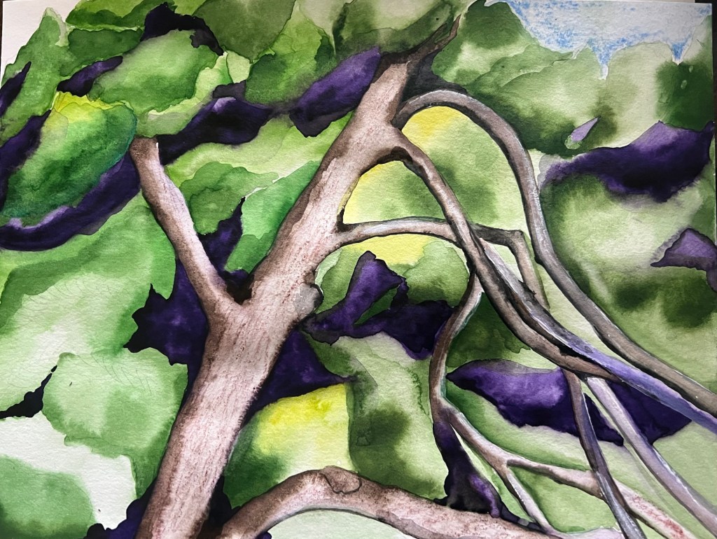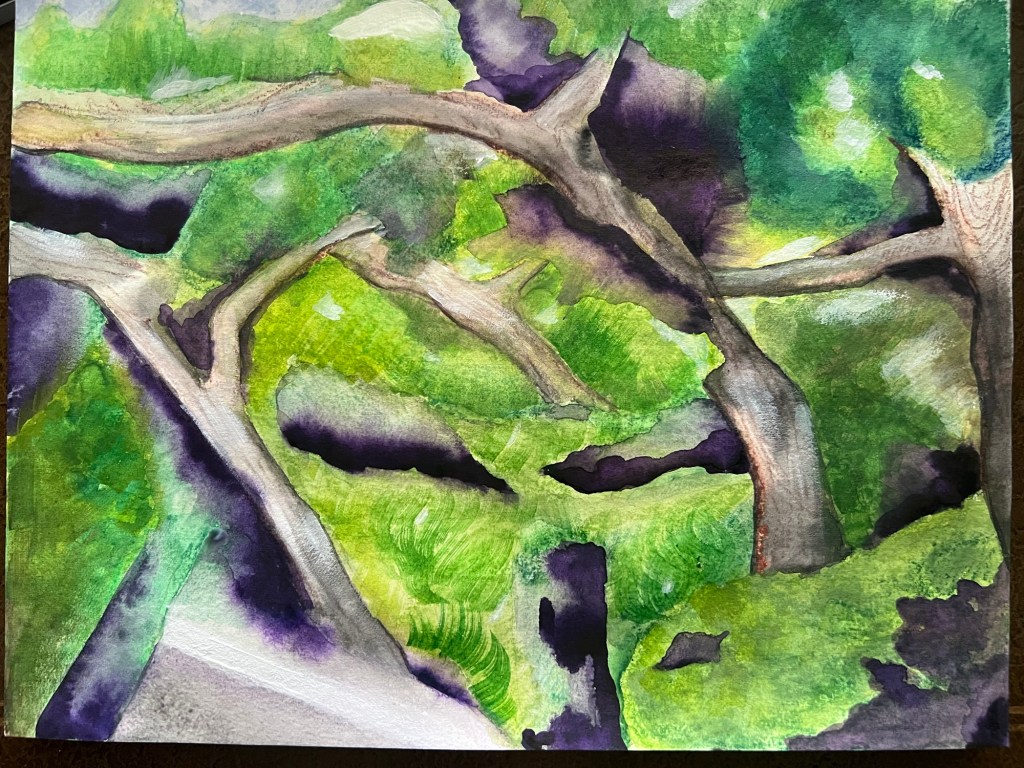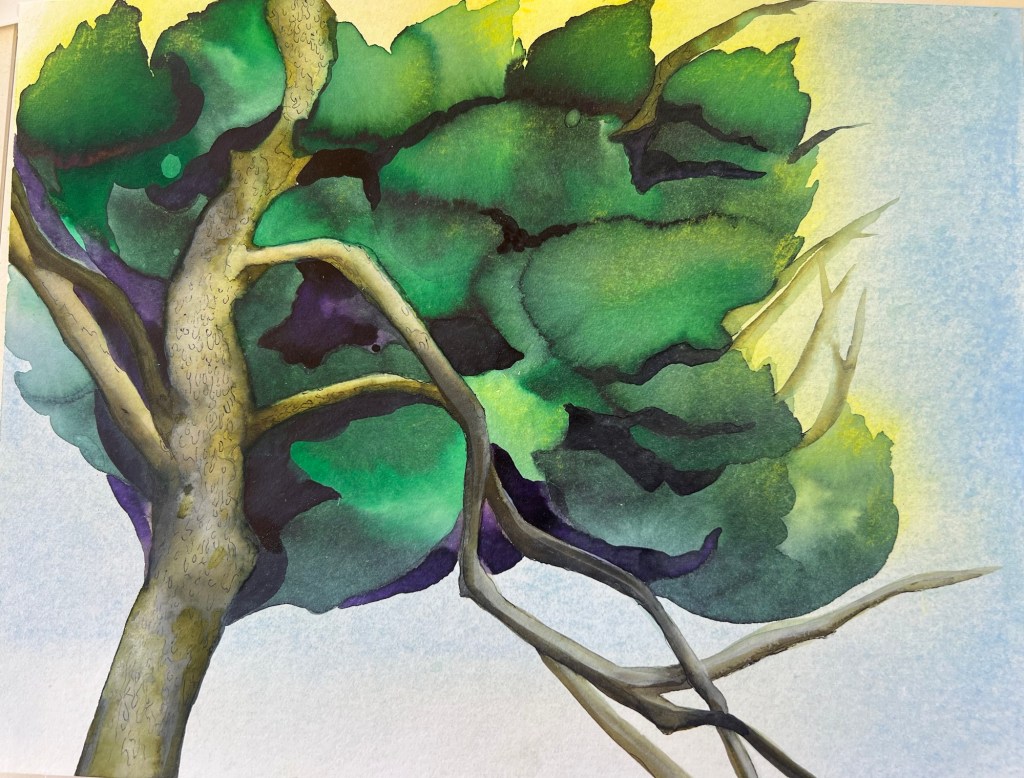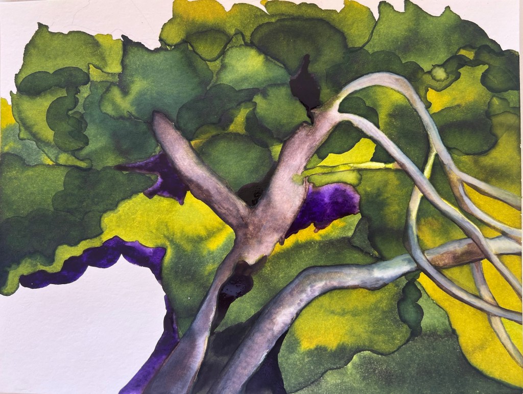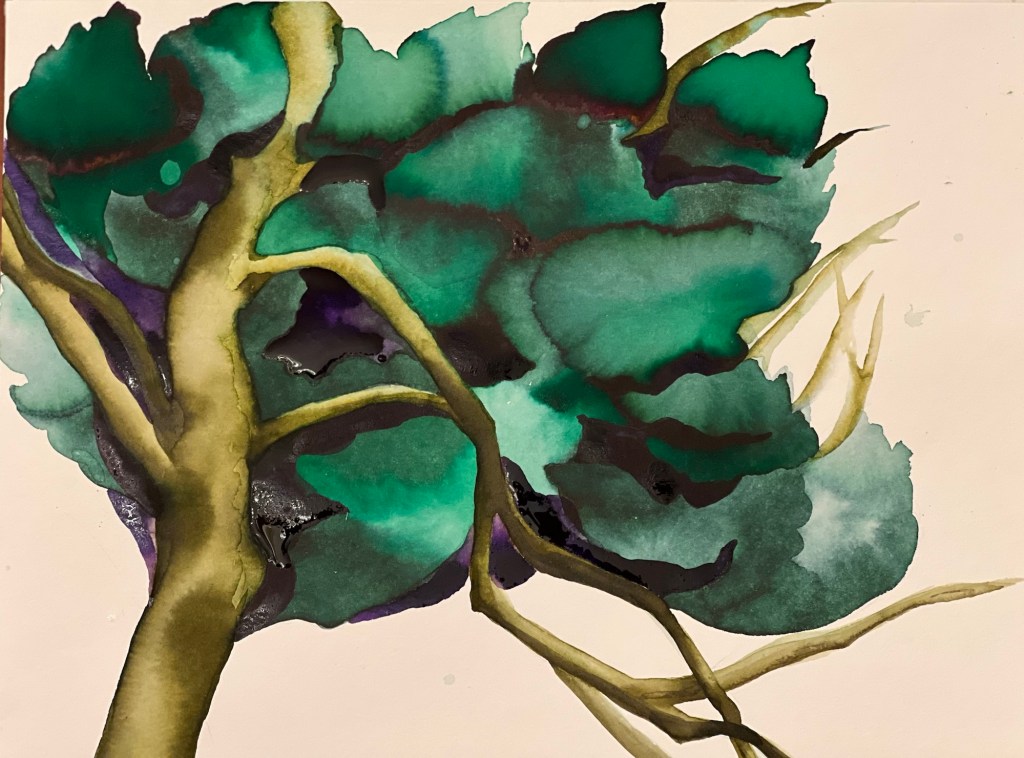Here’s another variant of the tree in a different green. It’s also important for me to check how the dark purple shadows connect with various greens.
