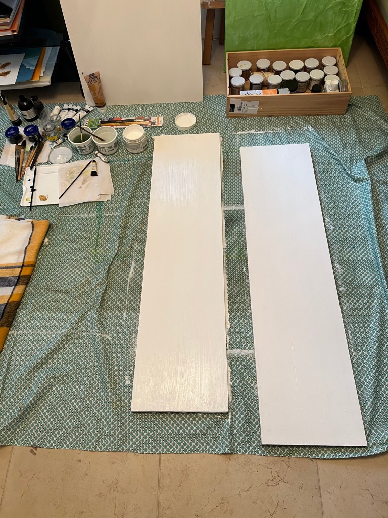 Today, I came to my studio space after lunch again to continue working with wooden boards in my project preparatory phase. It was important for me not to rush myself and take time and discipline to prepare the painting surface. This is part of the creative work, and the quality of the preparation determines the artwork’s final quality. I clearly sensed this and tried to go through this phase with due diligence. I worked for another hour.