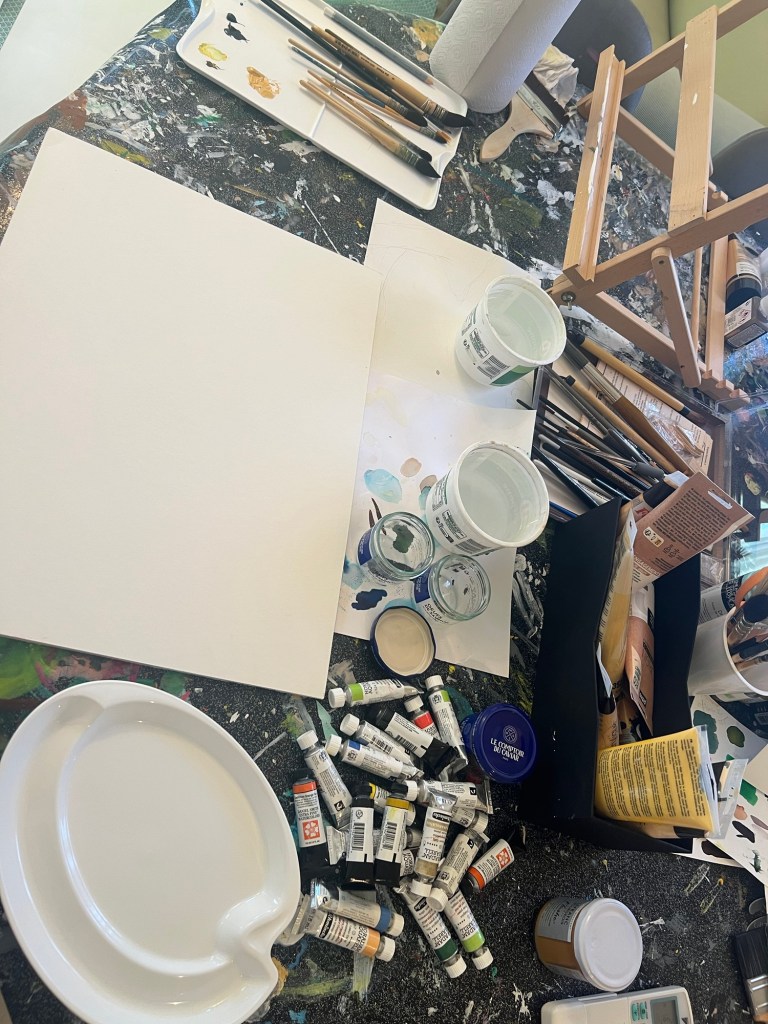 The days I can spend 4-6 hours working in my studio are rare, but I am glad they happen much more often. The major progress for the last months since the beginning of the year is that I learned how to spend at least an hour dedicated to my artworks. My main challenge is to manage my physical ability and energy for creative work, which is very demanding from this standpoint. I understand I can’t work after 5 pm because I am too tired. The art takes all of you, so I must be well-rested. I can not be spontaneous since painting requires lots of stuff and is a messy process, so I have to be in my studio. I plan my week by blocking hours on certain days in advance and trying to stick to my plan, which makes some people unhappy since I have to say “no” to their inquiries. This kind of planning works for me better than being spontaneous.