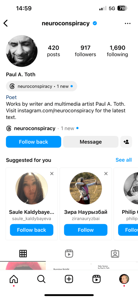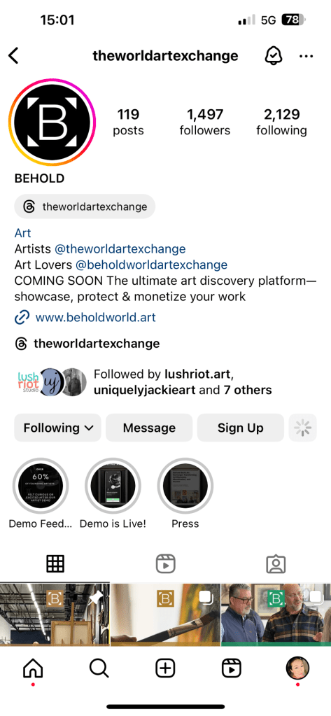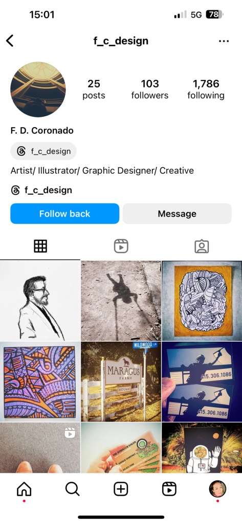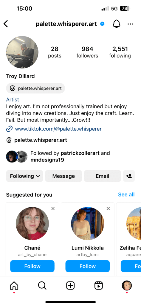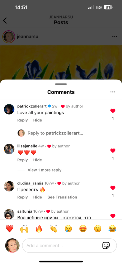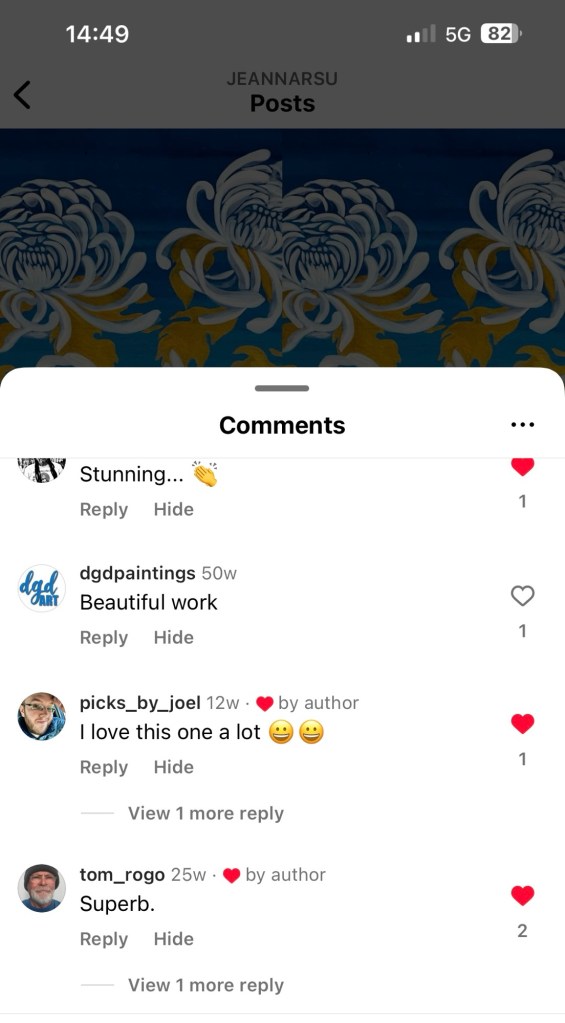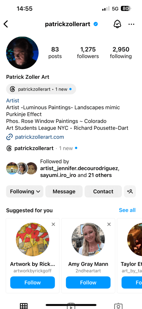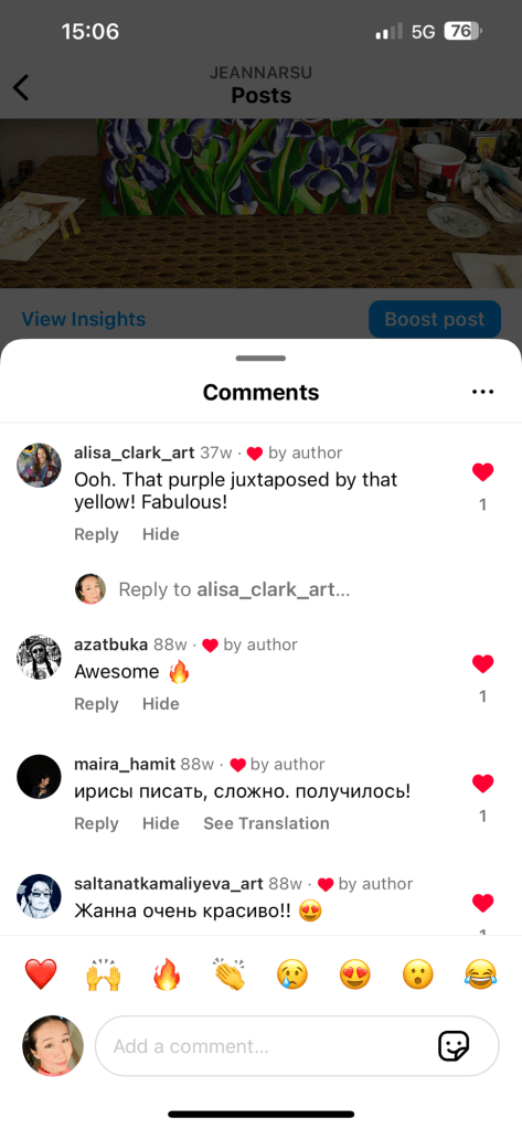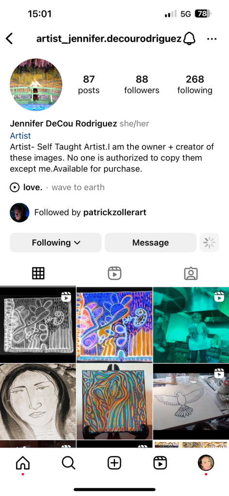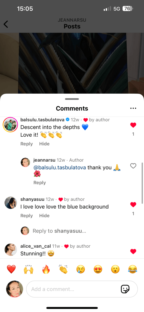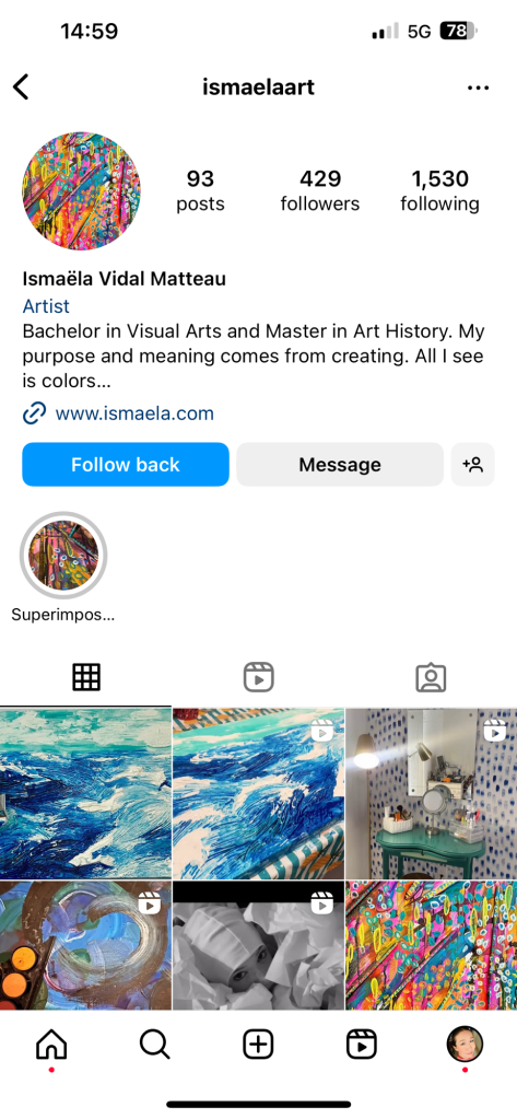 However, I have not lived in a vacuum since my Instagram account gained more subscribers over the last six months. I have been promoting several of my artworks, targeting people in the visual arts industry in the USA and Europe. My account subscribers are various artists, and I feel flattered because when I check their accounts, I see they are also rising or established professionals. Some of them comment on my various artworks, and I know that they check my account by watching different works of mine. There are 3505 subscribers to my account so far. I have placed below some of their work so you can see the level of my Instagram community connections: