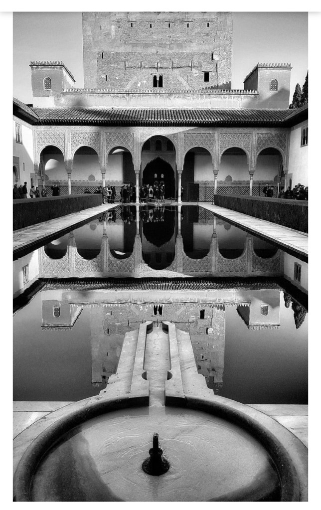 Above: William Dalrymple, The Court of The Myrtles, the Alhambra, Granada; Image via http://www.vadehraart.com [accessed on May 7th, 2025]