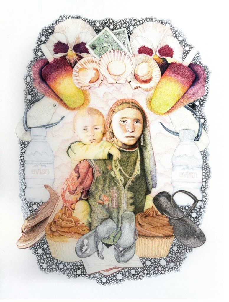 The artist is at the top of my list because her works manifest fine art skills engaged in channelling spiritual ideas I comprehend and deeply resonate with. I placed three works depicting female Hindu mythological mothers. Interestingly, the artist placed Mariam, mother of Jesus, among Parvati and Yashoda, merging different religious traditions and centring them around motherly figures. I am attracted to the creativity of these artist because we share an interest in the subject as well as overall emotional aesthetics. In my previous course in the relevant assignment, I mentioned several times that I was interested in iconography and planned to work in this genre. This artist is an excellent example of modern iconography interpreting and blending Christian and Hindu spiritual traditions and visual language in a unique, unforgettable way. I would love to have a conversation with her about traditional Indian visual art, such as Pichwai, and what she thinks about the mutual influence between Western and Eastern visual arts.