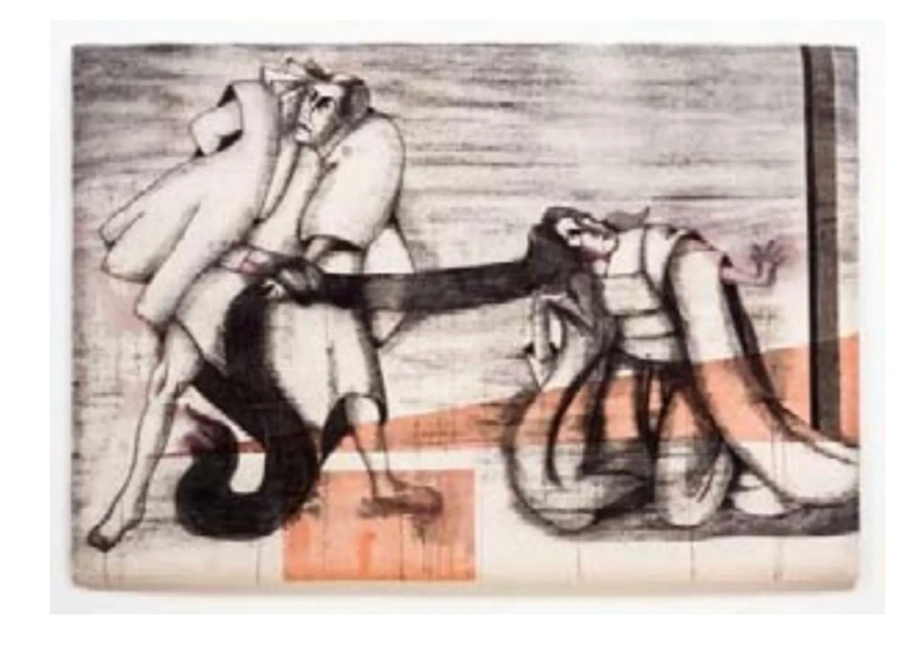 I have always been attracted to mythology illustration artworks. The artwork above is devoted to the Hindu Goddess Draupadi, “a lady of utmost courage, intelligence and patience”(www.darupadiparashakti.com, [accessed on May 8th 2025]); I also appreciate the charcoal as a medium, though I don’t practice it much yet. This painting is an excellent example of the artist picking a great medium to channel the story’s narrative. I believe the image is a scene from the Mahabharata when Draupadi was brutally insulted by an evil character named Dushasana: “Dhuryodhana, wanting revenge, tells Dushasana to bring Draupadi to the court. Draupadi declines, but Dushasana drags her to the court with her hair.” (www.darupadiparashakti.com, [accessed on May 8th 2025]. The charcoal serves to show the anger of a male and the tension of the scene, as well as the strong black hair of Draupadi, which, here I think, symbolises her strength.
