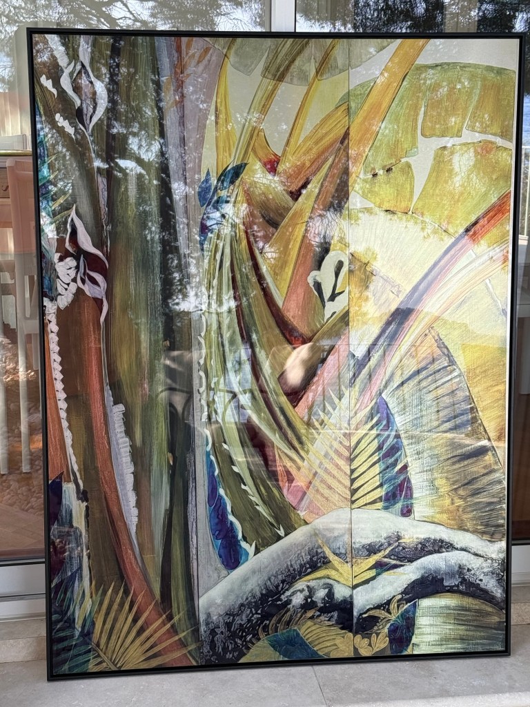 My exhibition will be substantially enriched with the metal Dibond prints of my original works. In June, I ordered and tested different prints of my selected artworks to evaluate the material and new effects I can achieve by making metal prints of my original works. I collaborated with White Wall Printing House, which is used by many renowned world-class photographers. I ordered a sample box from them and then selected several surfaces for the paintings I had created earlier. I decided to test different kinds of Dibond prints because the final product looks very chic and original. I was afraid that the original work would fade compared to prints, but actually, it didn’t, and I would say it even gained more character as a handmade piece. Although the prints have their own independent life, I find them highly original as well.
