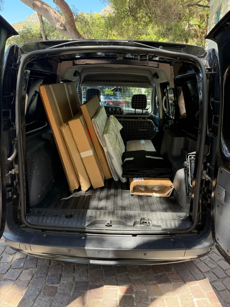 Below I post the photos and videos of myself bringing the items and arranging them in the space I rented.