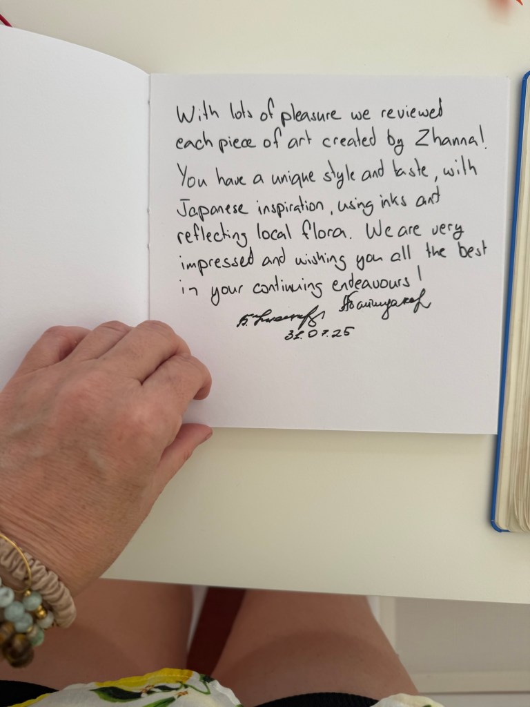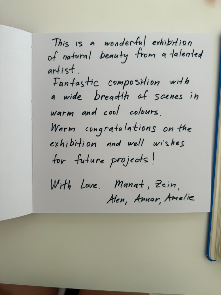 Today, I also had the highest number of walk-ins, who noticed the signs in the hotel and wanted to see the artworks. I have included below some photos of my visitors during their viewing.