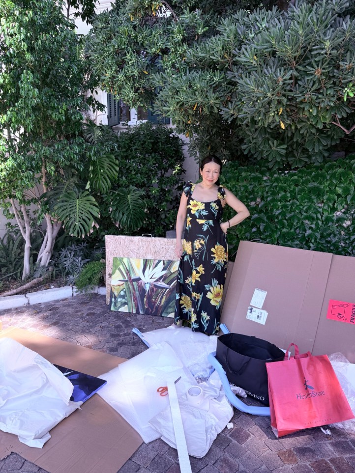 The week from July 28 to August 3d, 2025, was a truly transformative time for me: I officially and publicly established a new professional and personal identity, which was shocking for many people I know in person and via social media platforms. My first exhibition experience was profoundly impactful on me in terms of understanding the viewers’ psychological needs, their behaviour, and demands. I reached a new level of understanding myself as an artist and realised the points of power my artistic style and visual language have on viewers. Now I see even more creative perspectives; there is so much more to learn and experiment with. Enrolling in the OCA, B(Hons)FA program was one of the best decisions I made in my life. It is also worth noting that my own creative self-identification emerged many years ago. I have been making creative decisions about the size, colours, artwork, and creating a particular type of visual aesthetic, as I have always been involved in creating a vibe through visuals and semantics, as an integral part of my business in the wellness industry. I never entrusted these decisions about the space transformation and visual impact on my clients within my business premises to someone else. My new endeavour in establishing myself as a professional visual artist is a fantastic extension of my previous artistic ambition and confidence. This creative self-identification has been a part of me, and it will always be with me; it doesn’t depend on public feedback and recognition, although it will be important to me. I am very determined to navigate the public exposure domain professionally. I entered this occupation later in life, and it has a certain advantage: my artistic and creative practice makes me self-sufficient, calms me down, and brings me happiness, even before I obtained my first tiny fraction of public recognition. I don’t chase fame because it is not what makes me truly happy. I don’t have the public attention deficit; my creative impulse doesn’t depend on the amount of public attention I get.